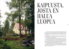 Jatkuvasti hereillä oleva maailma ja arki kaupungissa tarjoaa jatkuvasti oikoteitä ja helppoja valintoja. Ehkä juuri siksi houkuttelevinta on rakentaa kakkoskoti paikkaan, johon yksikään mökkitie ei johda ja jonne päästäkseen on jätettävä kiire taakseen.