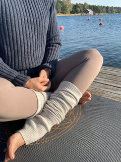 Finnö-neulesarjan pitkät säärystimet merinovilla-cashmere ribbineulosta. Säärystimet ovat kiva lisäys asuihin ja lämmittävät ihanasti. Säärystimissä on kantapäässä halkio, jonka vuoksi sopivat hyvin myös joogaan ja pilatekseen. Säärystimet voit pukea vaikka korkojen kanssa. Ajopuu sävy on kaunis murrettu kitti.