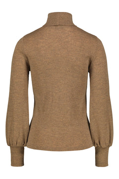 Kaunis Galtby-poolopaita pussihihalla pehmeää merinovillaneulosta uudessa upeassa Kaisla sävyssä. Leveä mansetti viimeistelee kauniisti pussihihan. Poolopaita on ajattoman tyylikäs, hiukan muotoon ommeltu ja istuu kauniisti. Poolokaulus on korkea, jonka voi kääntää tai jättää rennosti pystyyn. Poolokaulus on suunniteltu niin, ettei se purista kurkkua. Murrettu lämmin meleerattu ruskean sävy, joka sopii upeasti niinmun denim-sarjan Brändö-denimhameen sekä Nagu- ja Finby-denimhousujen kanssa.