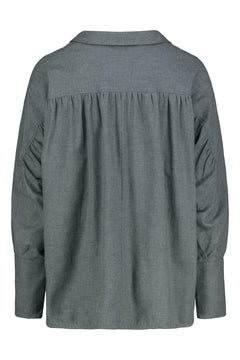 Paljon toivottu uutuus Kustavi-paitapusero. Materiaalina upea harmaa puuvilla flanelli, joka on täydellinen talveen. Kauniina yksityiskohtana on leijamainen hiha, joka jatkuu suoraan ilman olkasaumoja. Selässä kaunis rypytys.Edessä nappikiinnitys, joka ei mene aivan ylös asti vaan tekee kauniin V-pääntien. Edessä isot paikkataskut. Hihansuissa halkiolliset mansetit. Paidan sivussa halkiot. Pyöristetty helma, joka takaa hieman pidempi. Kaunis laiturinharmaa sävy.