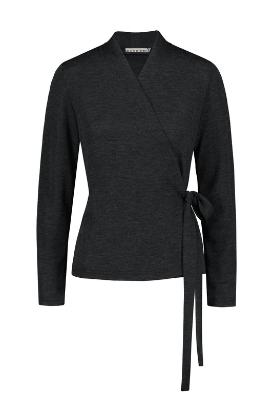 Klassinen ja tyylikäs Själö-kietaisupaita on ihana arkeen ja juhlaan. Materiaali on pehmeä ja ylellinen kotimainen 100% merinovillaneulos. Merinovillan pehmeys tuntuu ihoa vasten pehmeältä ja lämpimältä. Kietaisupaidassa pieni shaalikaulus, joka nousee kauniisti niskaan. Yläosan kappaleet menevät hyvin päällekkäin eikä pääntie ole liian avara. Suora ja pitkä väljä hiha. Materiaali on joustavaa ja kietaisupaita toimii hyvin myös väljemmin puettuna esimerkiksi paitapuseron tai mekon päällä neuletakkina. Grafiitinharmaa on tyylikäs meleerattu tummanharmaa sävy.