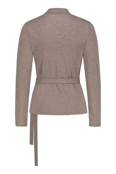Klassinen ja tyylikäs Själö-kietaisupaita on ihana arkeen ja juhlaan. Materiaali on pehmeä ja ylellinen kotimainen 100% merinovillaneulos. Merinovillan pehmeys tuntuu ihoa vasten pehmeältä ja lämpimältä. Kietaisupaidassa pieni shaalikaulus, joka nousee kauniisti niskaan. Yläosan kappaleet menevät hyvin päällekkäin eikä pääntie ole liian avara. Suora ja pitkä väljä hiha. Materiaali on joustavaa ja kietaisupaita toimii hyvin myös väljemmin puettuna esimerkiksi paitapuseron tai mekon päällä neuletakkina. Sävy on kaunis murrettu viileä ruskea.